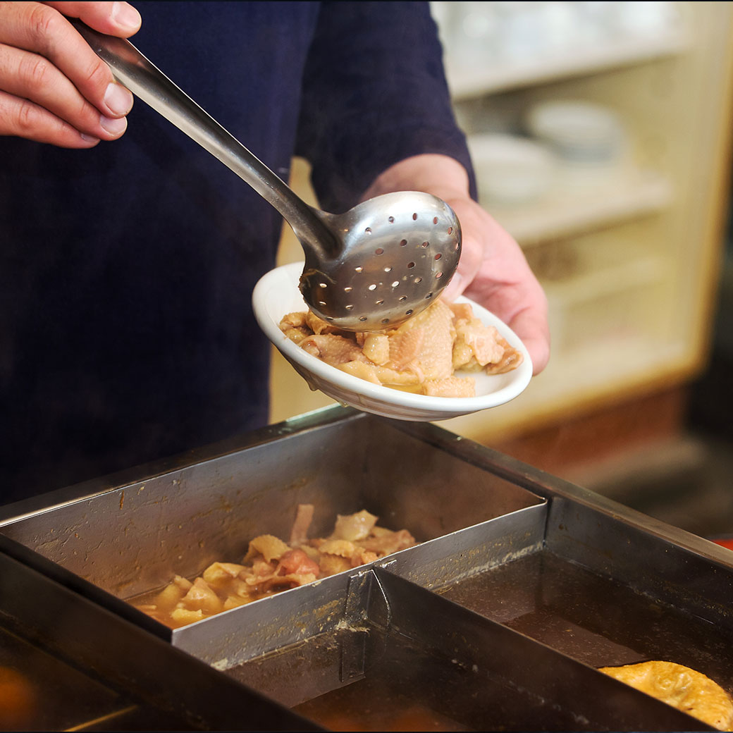 丁寧に煮込んだとろやわ食感。からし・一味でどうぞ